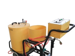QTGF-60型便携式灌缝机,主要是适用于沥青路面不规则裂缝、混凝土路面的伸缩缝、上下水道、煤气管埋设及铺装路面的连结处,而专门设计、生产的一款便携式沥青补灌逢专业机械。二技术特点体积小、重量轻、方便移动施工,以液化气为燃料,经济、环保;利用导热油为热传导,加热快,物料受热均匀,机体外部采用硅酸铝岩棉,充分保温,使物料保温时间延长,同时兼顾施工作业人员的安全。在机体上部,备用手动搅拌装置,加快热交换,使物料熔化更加充分、均匀.