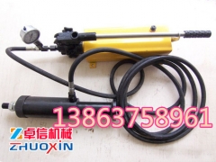 首先拧下油缸和油泵上的防尘帽,用高压胶管把油缸和油泵连接起来再把压力表装上。